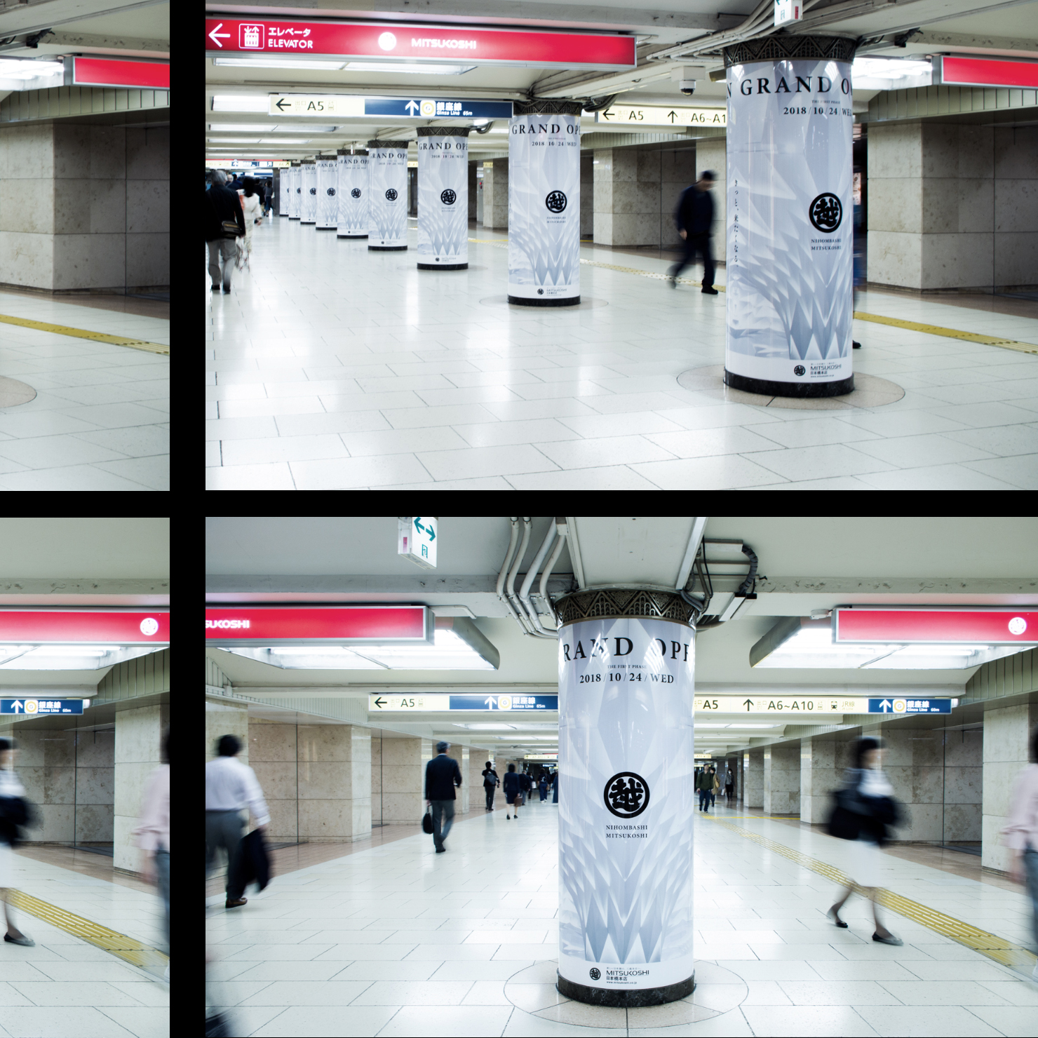ポスター、「三越前駅」「日本橋駅」柱巻き広告、サイネージ等の