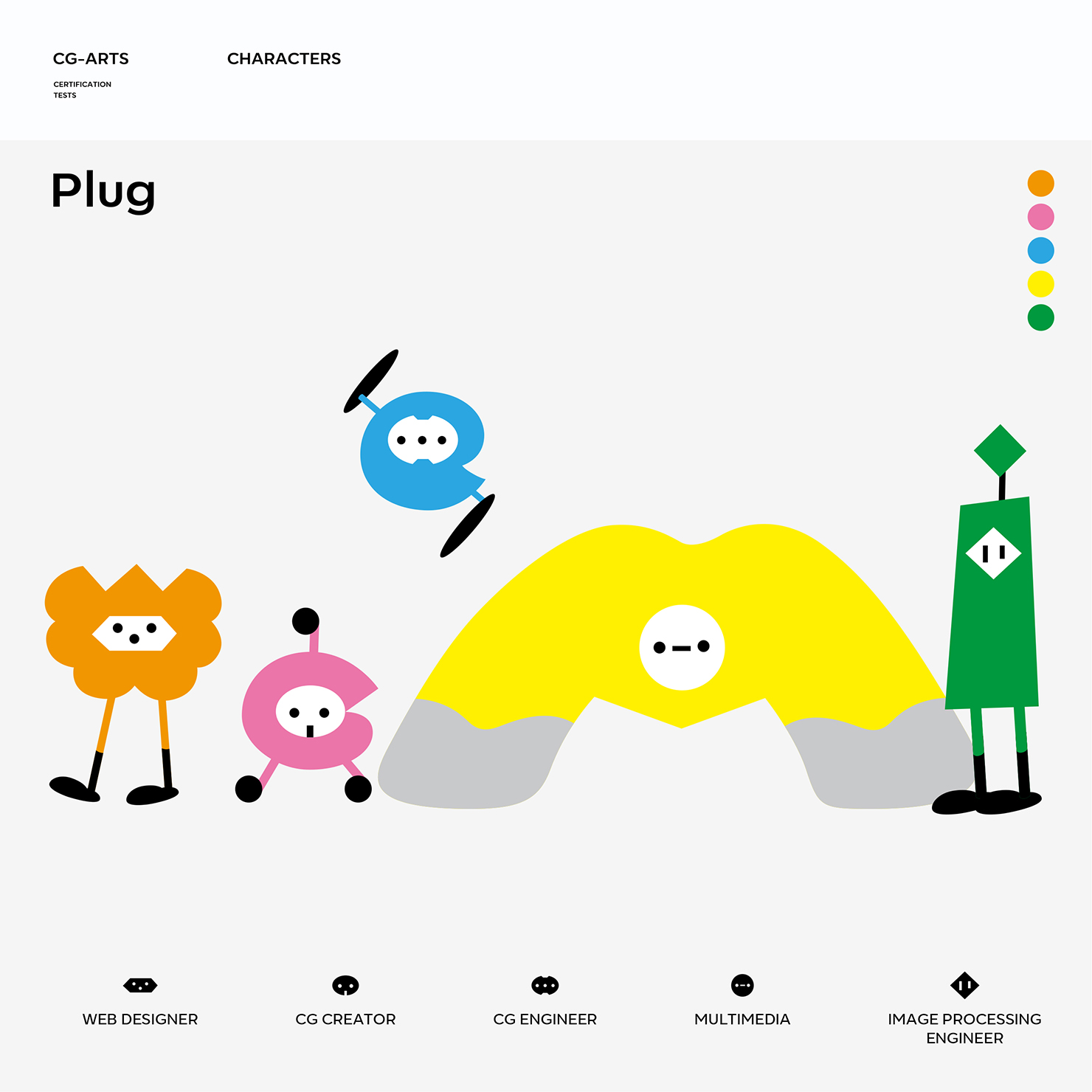 つながりをもって設計された検定の特性を[PLUG]というコンセプトでキャラクター化した。