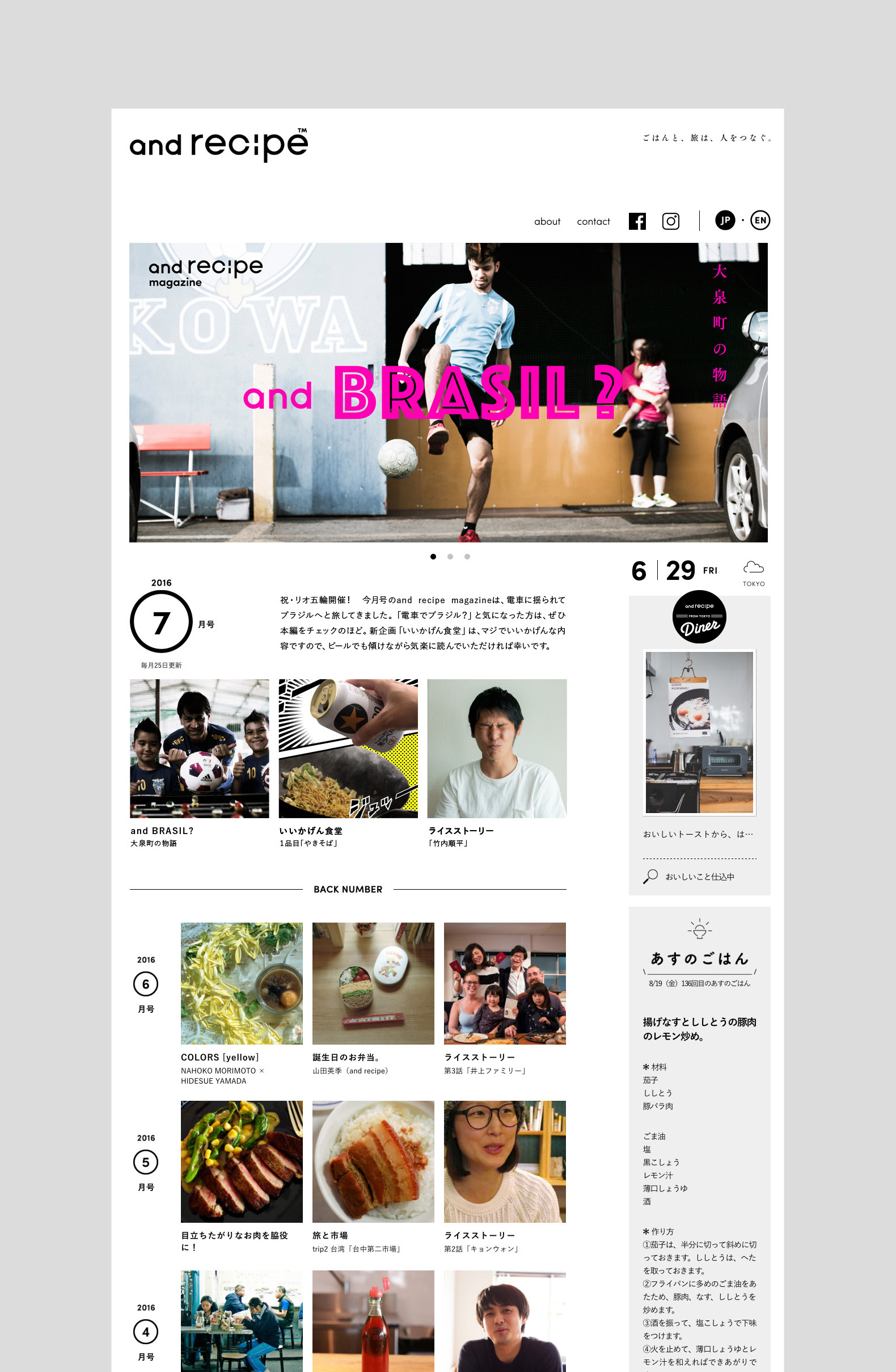 [and recipe] web magazine 7 “and BRASIL” 「and recipe」ウェブサイトとコンテンツのアートディレクション・デザイン http://andrecipe.tokyo/ CL:andrecipe